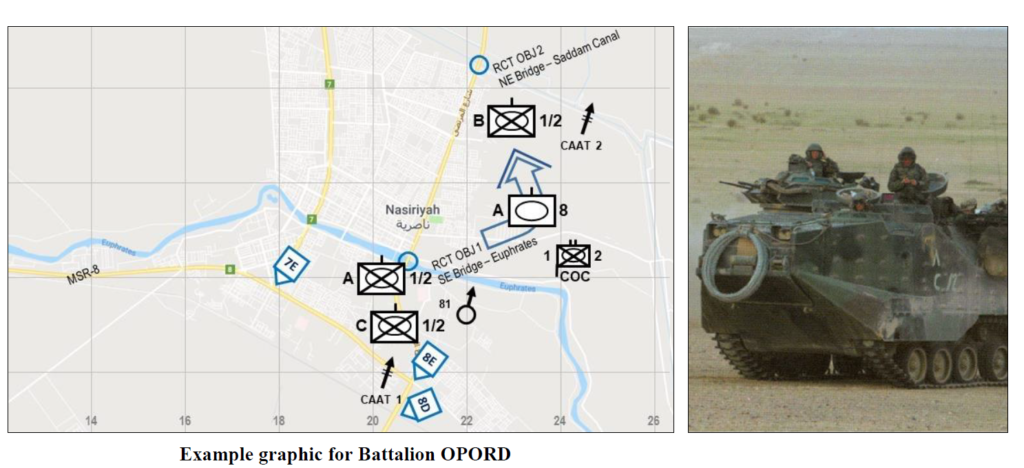 El hecho de que el Cuerpo de Marines se centre en el proceso de planificación y en las órdenes escritas disminuye nuestra capacidad de emitir órdenes verbales eficaces. Piense en sus propias experiencias con las órdenes verbales. En un wargame en Quantico, «No pudimos escribir una orden en sólo una hora, así que estas viñetas representan nuestros pensamientos». En un simulacro de plan de guerra en Camp Pendleton, «Si esto fuera real, tendríamos las imágenes que nos permitirían hacer nuestros planes». En un TDG, PME de batallón, «Hemos esbozado dos opciones para pensar». Durante un ejercicio, una voz crepita por la radio, “Move to phase line gold and stand by for further orders.” ¿Pensamientos? ¿Planes? ¿Opciones? ¿Preparados? ¡Marines, necesitamos una orden clara implementando su decisión ahora!