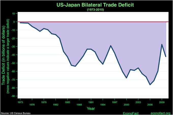 Aunque en un principio fue tolerable, el rápido crecimiento de la industria exportadora japonesa en la posguerra le permitió superar rápidamente a la estadounidense al producir bienes de calidad similar a un tercio del precio. Esto provocó una importante reacción antijaponesa en Estados Unidos, especialmente entre los trabajadores del sector del automóvil.