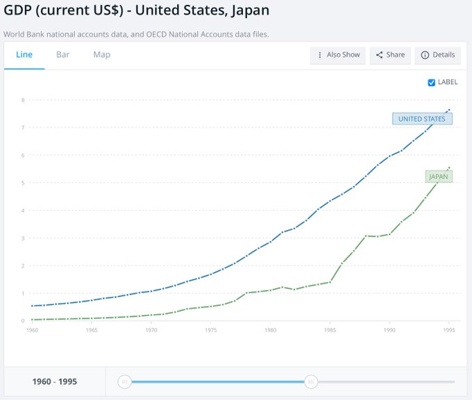 Pero el verdadero objetivo del acuerdo era paralizar la economía manufacturera de Japón. El plan tenía dos partes. La 1ª parte consistía en disminuir el valor del USD, mientras que la 2ª era desregular la economía japonesa, flexibilizar la política monetaria / liberalizar los mercados y recortar el gasto público.