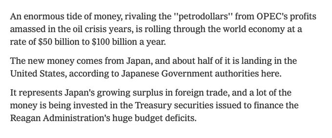 Japón. En 1985, las entradas de capital atraídas por los altos tipos de interés hicieron que Japón poseyera más bonos del Tesoro que ningún otro país. Pero, ¿por qué comprar sólo bonos del Tesoro?