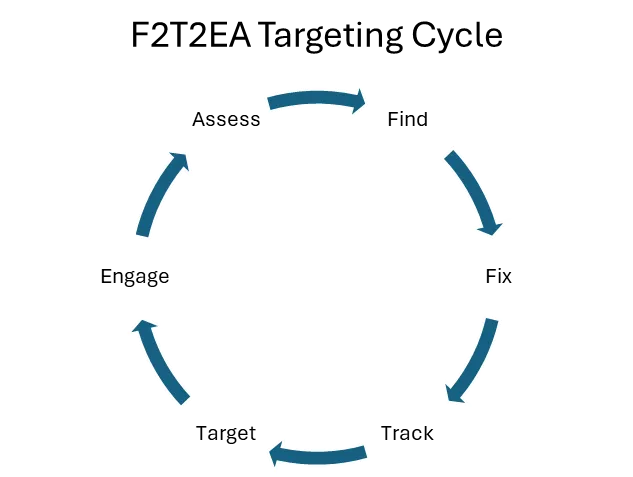 Los pequeños UAS no operan de forma aislada, sino que forman parte de una red de ataque descentralizada y en constante evolución, que ejecuta tareas coordinadas en el ciclo de selección de objetivos con rapidez y precisión. Este ciclo, procedente de la doctrina militar tradicional, se desarrolla en seis etapas fundamentales: localizar, fijar, rastrear, seleccionar, atacar y evaluar.